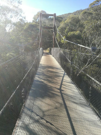 The track then meanders through a peaceful forrest of Eucalypts (Image 5) and it's not long before you come to the first of the suspension bridges (Image 5). It was very impressive and we of course stopped on the bridge to take in the surrounds and enjoy the Thredbo River flowing under our feet (Image 6).